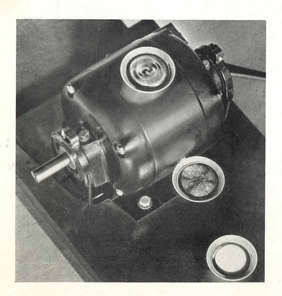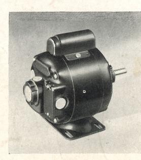 The 1/4-hp, 60-cycle, Type KH motor for washing machines has mounting dimensions identical with those of 1/4-hp G-E washing-machine motors for other power supplies. They all mount in the same space and in the same cradle, as illustrated above. By simply loosening two screws, motors for various power supplies can be quickly interchanged.