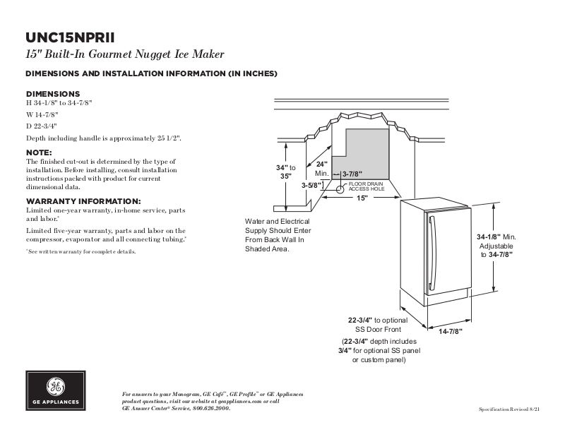 Panel Kit: PK1UG150RSS (Profile), CK1UP150RS1/D1/W2 (Café), ZK1UN150RS (Monogram)