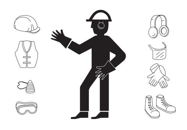 Когато се работи с машината или се извършва обслужване и ремонт, трябва винаги да се използва следното работно облекло и средства за безопасност на труда: