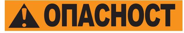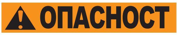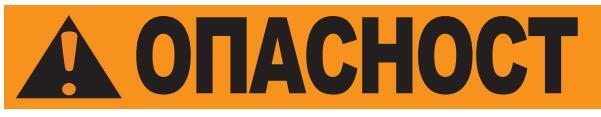 А ОПАСНОСТ С оранжев цвят: показва наличие на потенциално опасна ситуация, която, ако не бъде избегната. може да причини сериозни наранявания или смърт.
