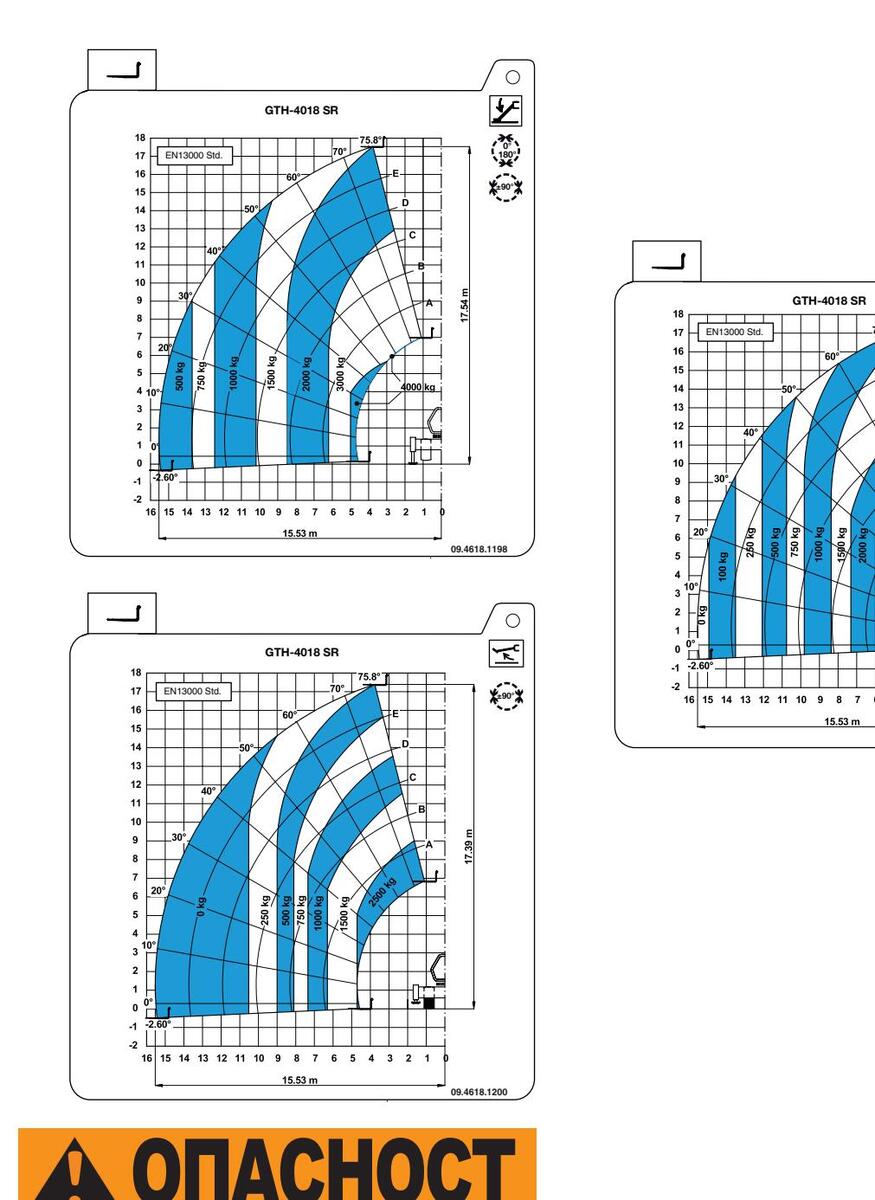 Винаги поддържайте минимално безопасно разстояние от тях: както на телескопичната стрела, така и на евентуалния вдигнат товар. Опасност от поражение от електрически разряди.
