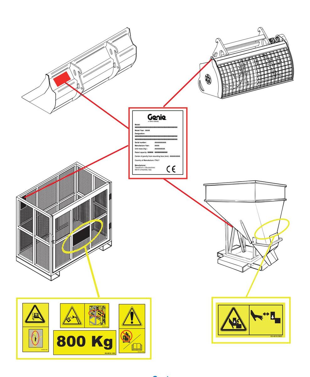 В идентификационната табелка са щамповани модела, предназначението, серийния номер, теглото, товароносимостта и годината на производство на оборудването.