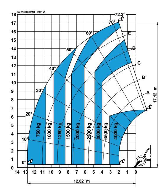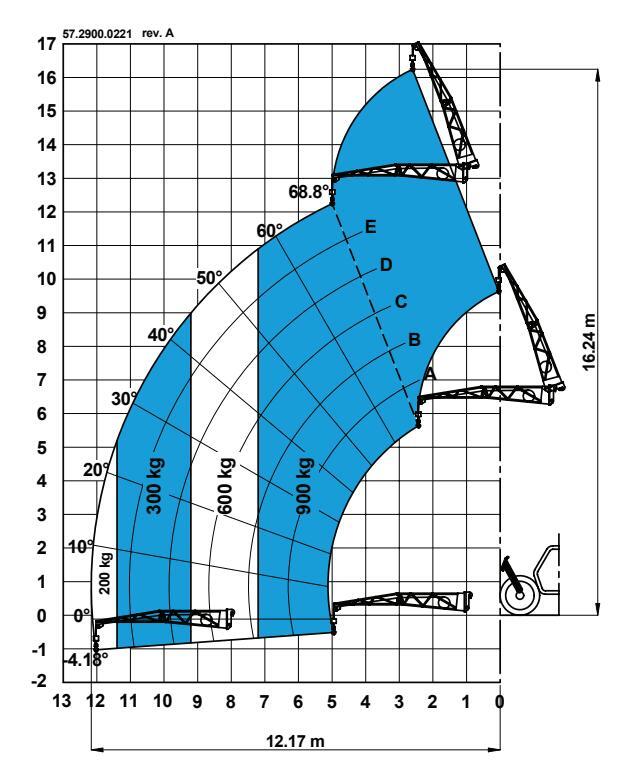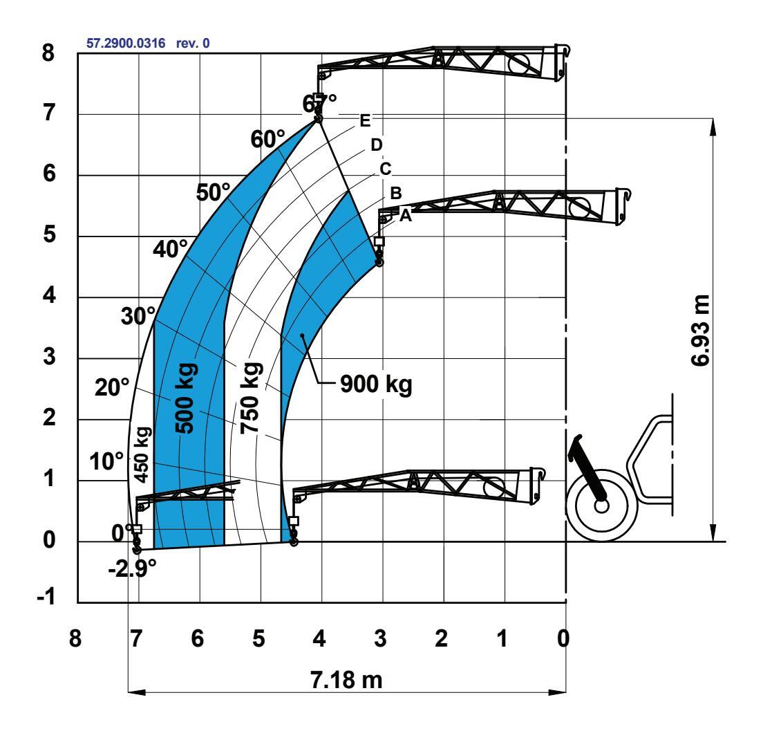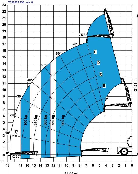 грузоподъёмность ТОЛЬКО для ГРУЗОВОЙ СТРЕЛЫ 4000 мм/900 кг |