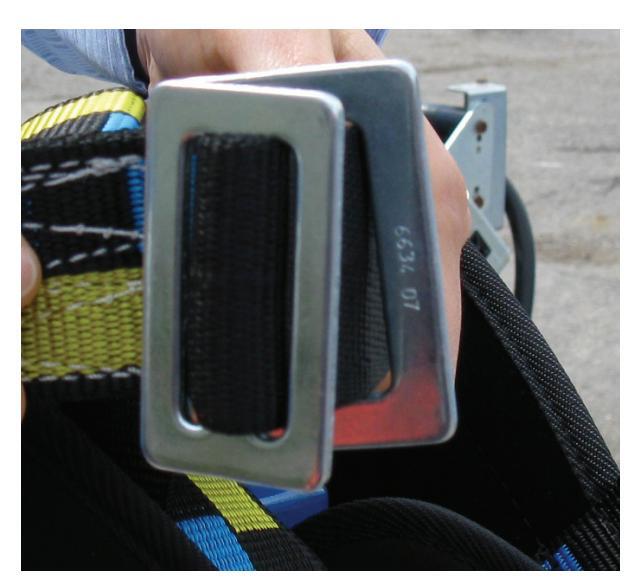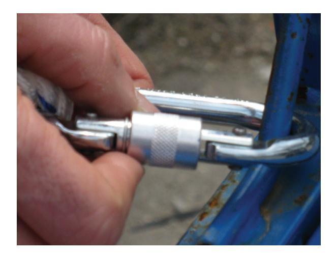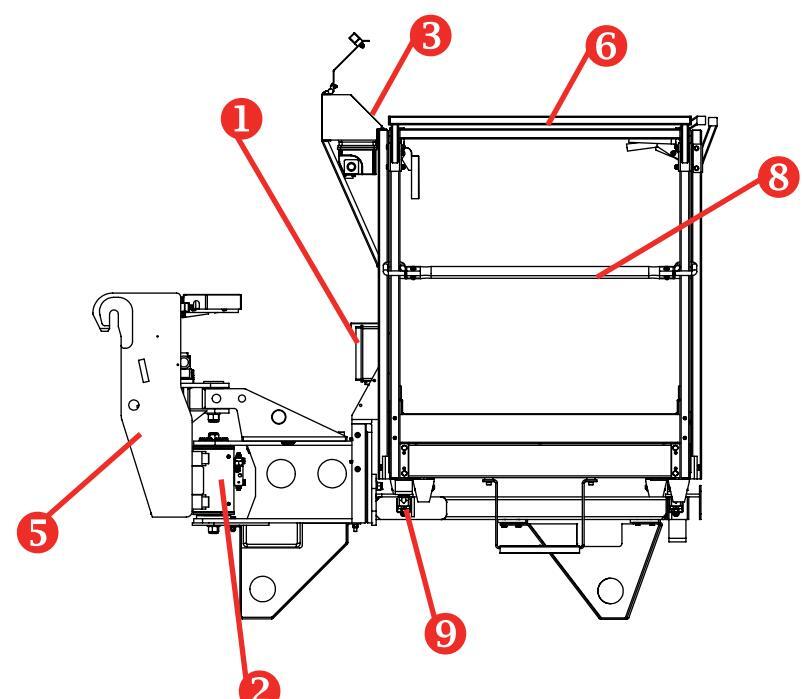 Prieš pervežant prie krautuvo prijungtą darbinę platformą, įsitikinkite, ar ji tinkamai sujungta su prietaiso sujungimo rėmu.