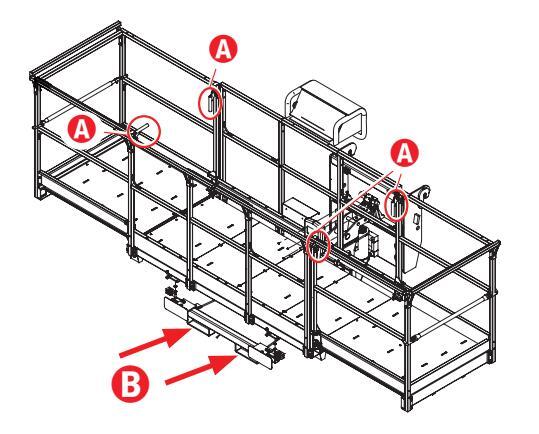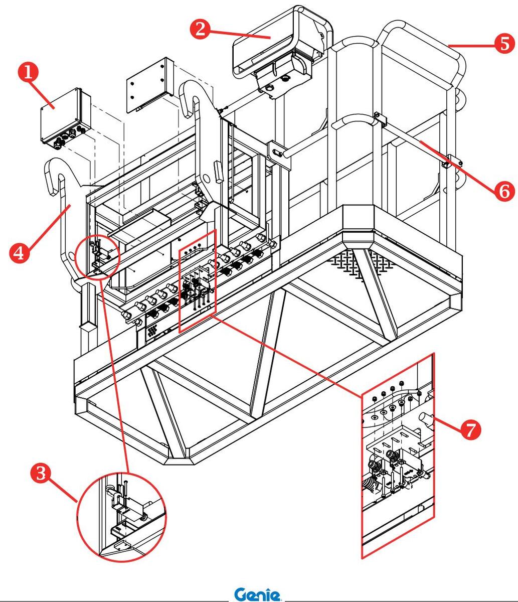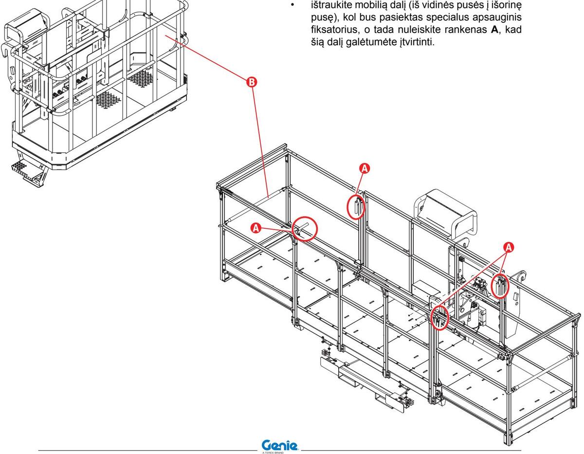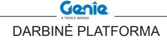 Šiame vadove aprašytos darbinės platformos nėra aprūpintos saugos prietaisais, apsaugančiais ant platformos esančius operatorius nuo iš viršaus krentančių objektų.