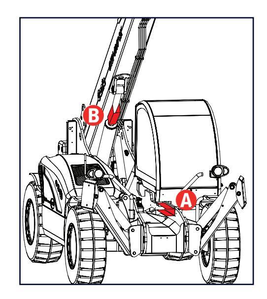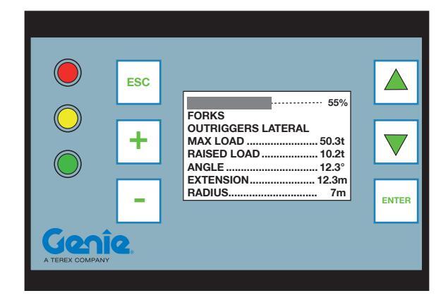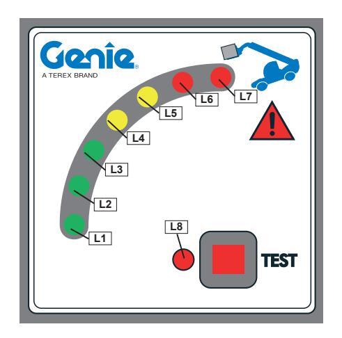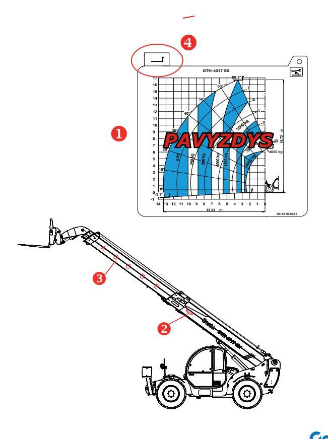 Paleidžiant teleskopinį krautuvą judesio apribojimo sistema vykdo automatinę patikrą. Esant sutrikimų, užsidega raudona LED lemputė ir pradeda skambėti garsinis signalas, įspėdami apie klaidą. Teleskopinis krautuvas pereis į avarinį režimą ir nebus leidžiama jokia eksploatacija.