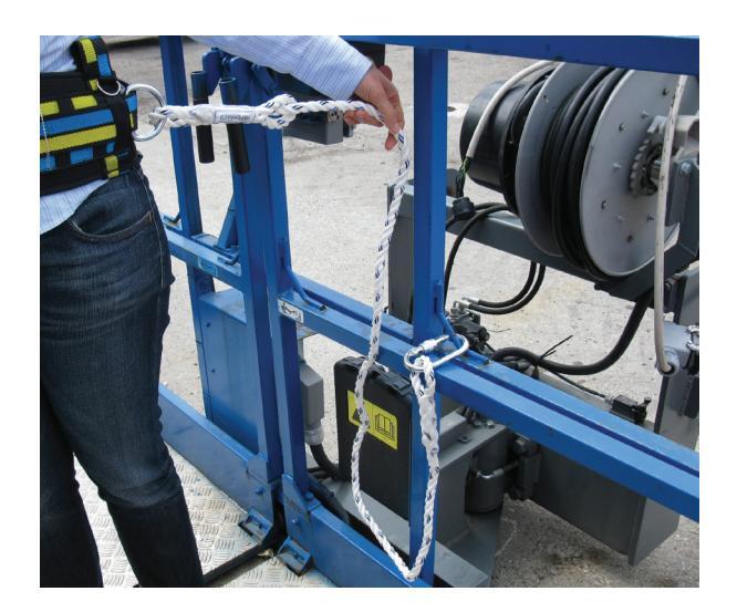 Šis raktas bus naudojamas tik nuleisti darbinę platformą ant žemės avariniu atveju.