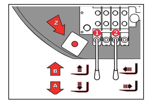 nuspaudę avarinio stabdymo mygtuką, nuspauskite avarinio siurblio mygtuką ir, laikydami jį nuspaudę, patikrinkite, ar valdymo rankenėle yra atliekamas reikiamas valdymas.