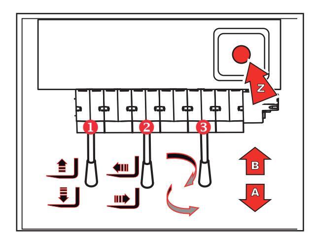 | Svirtelė 1 padėtyje A | Strėlės nuleidimas |