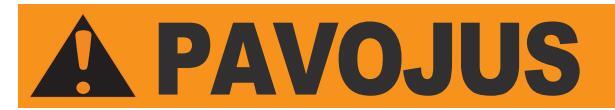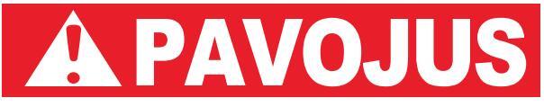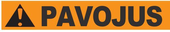 A PAVOJUS Oranžinis: žymi pavojingą situaciją, kurios nepavykus išvengti naudotojas, rizikuoja mirti arba būti rimtai sužalotas.