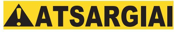 Saugumo įspėjimo ženklas: naudojamas įspėti apie galimą susižalojimo pavojų. Pakluskite visiems saugumo pranešimams einantiems po šio ženklo, kad išvengtumėte galimų sužalojimų ar mirties.