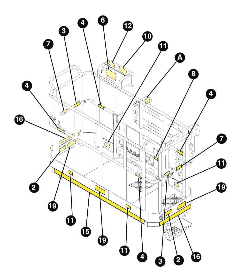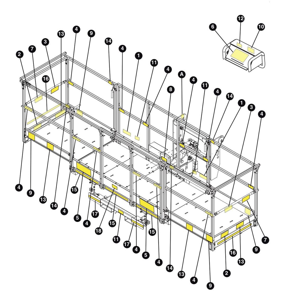 Darbinės platformos identifikavimo plokštelė tvirtinama darbinės platformos užpakalinėje pusėje.