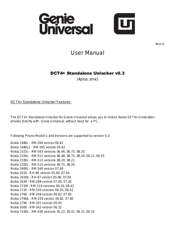 The DCT4+ Standalone Unlocker for Genie-Universal allows you to Unlock Nokia DCT4+ Generation