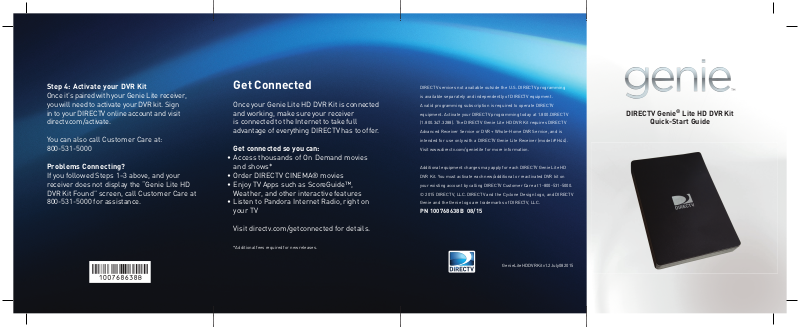 (1.800.347.3288). The DIRECTV Genie Lite HD DVR Kit requires DIRECTV