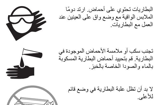 قد ينجم عن عدم اتباع التعليمات وقواعد السلامة الواردة بهذا الدليل التعرض للموت أو الإصابة الخطيرة.