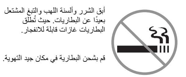 الأسلاك من التيار المترَّدد فقُط. لا تعرض البطاريات أو الشاحن للماء أو المطر أثناء الشحن.