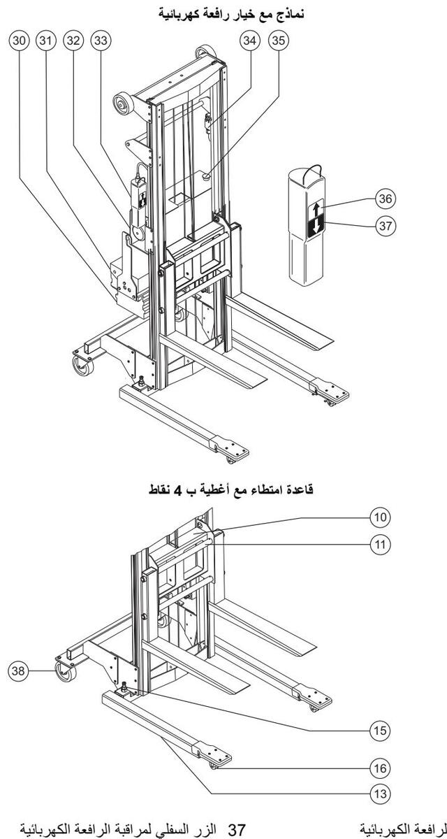 خيار الرافعة الكهربائية سوف يضيف 47 كجم لأوزان الألة أعلاه.