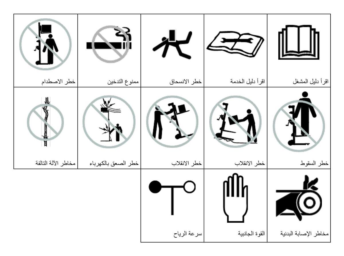العمل بمخاطر الإصابات البدنية المحتملة. التزم بجميع رسائل السلامة التي تلي هذا الرمز لتجنب الموت أو الإصابة المحتملة. |