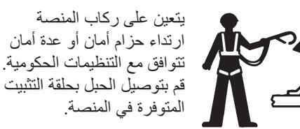 يتعين على ركاب المنصبة ارتداء حزام أمان أو عدة أمان تتوافق مع التنظيمات الحكومية. قم بتوصيل الحبل بحلفة التثبيت المتوفرة في المنصبة.