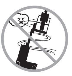 لا تقد الآلة على الأرض غير الممهدة أو بالقرب منها أو على الأسطح غير المستقرة أو في الأحوال الأخرى الخطيرة عندما يكون عمود الرفع مرفوعًا أو ممددًا.