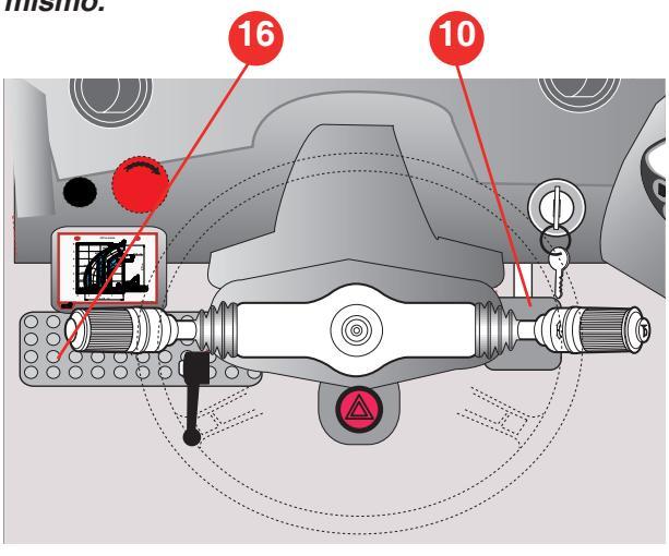 Se encuentra en el lado izquierdo del soporte portahorquillas.
