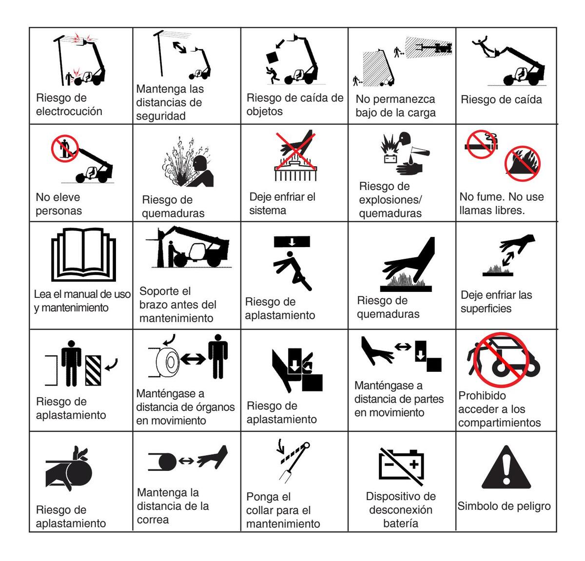 Para la seguridad del operador, durante el análisis de los riesgos del manipulador con brazo telescópico se han adoptado las disposiciones pertinentes de las siguientes normas: