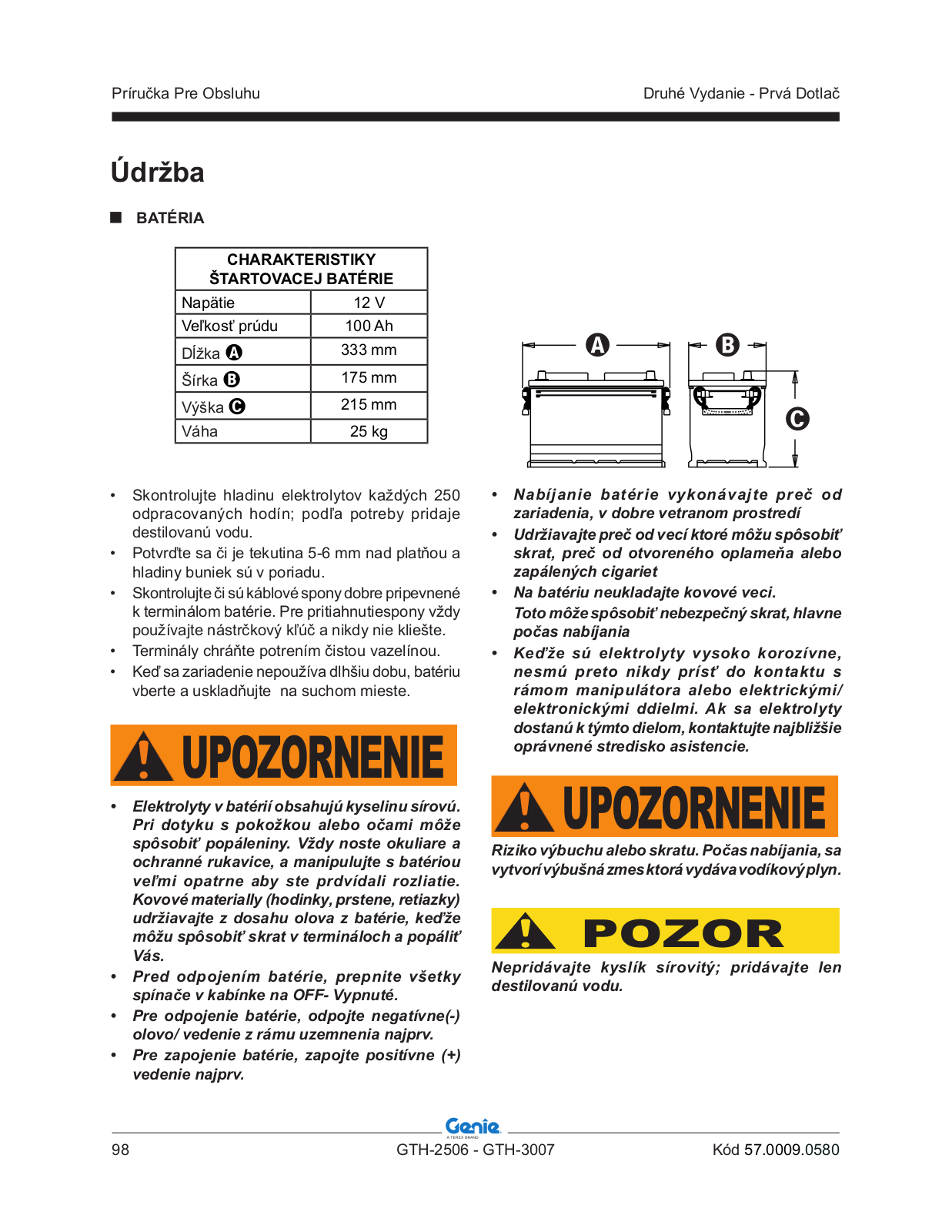 Riziko výbuchu alebo skratu. Počas nabíjania, sa vytvorí výbušná zmes ktorá vydáva vodíkový plyn.