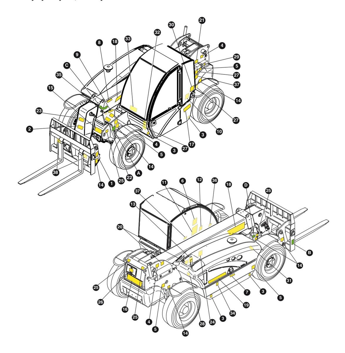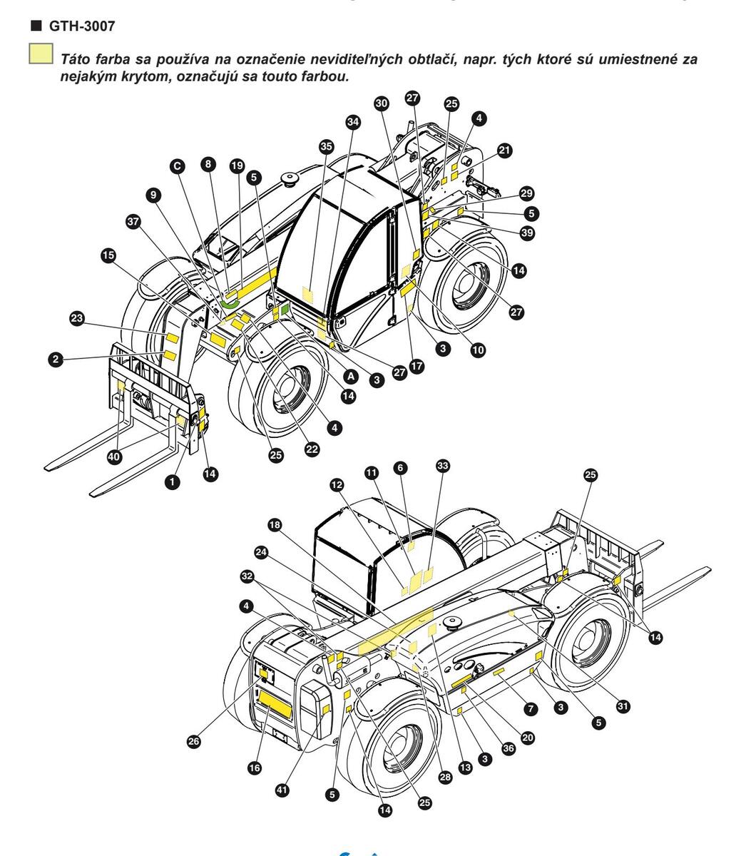 Štítky s údajmi o hlavných komponentoch nie priamo vyrobených spoločnosťou TEREXLIFT srl (napríklad motory, čerpadlá, atď.) sa nachádzajú tam, kde ich výrobcovia pôvodne umiestnili.