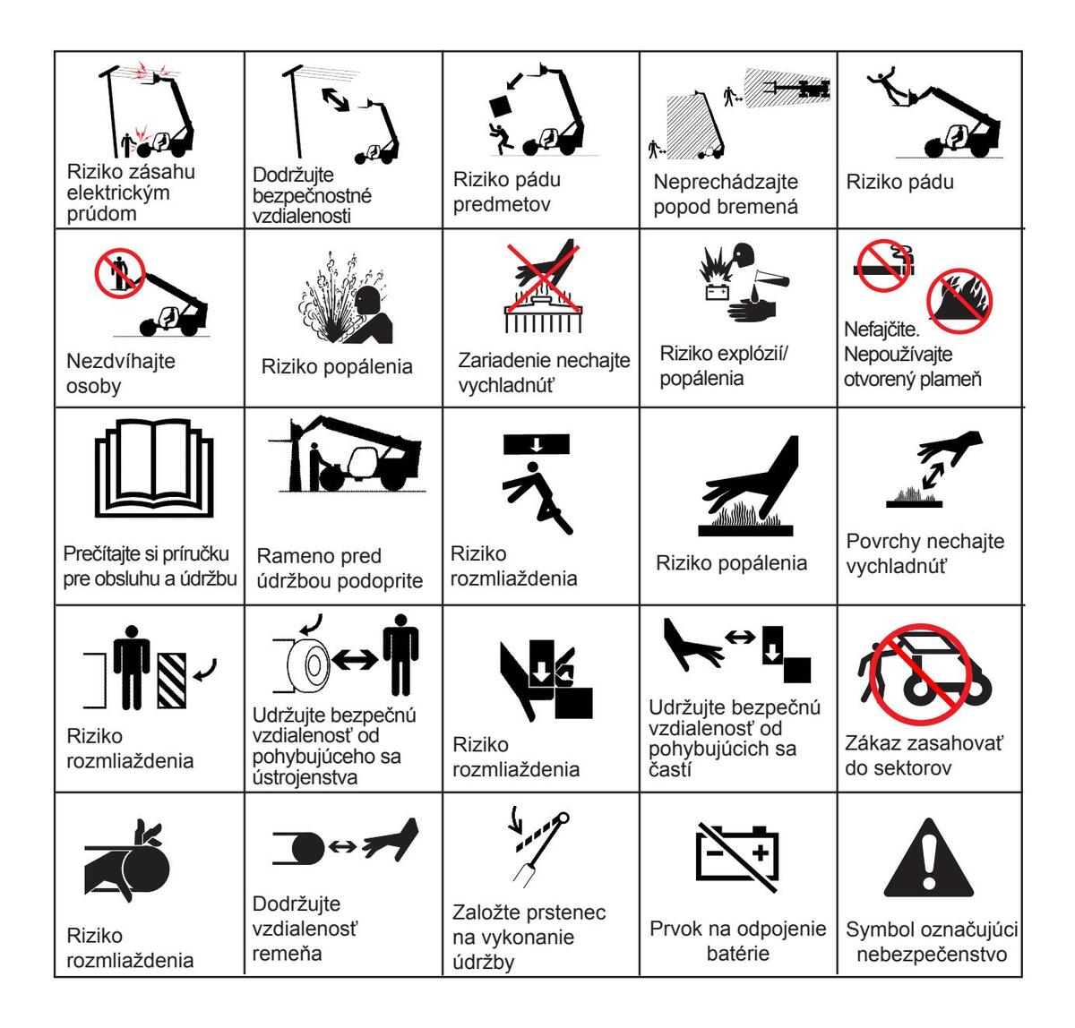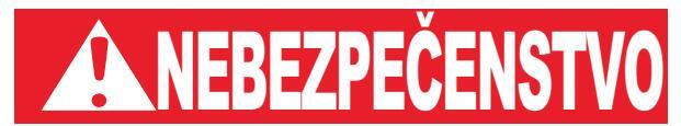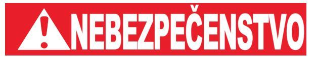 NEBEZPEČENSTVOČervenej farby: označuje situáciu predstavujúcu bezprostredné riziko. ktorej je treba zabrániť. Ak sa jej nezabráni, môže dôjsť k vážnym poraneniam alebo až k usmrteniu.