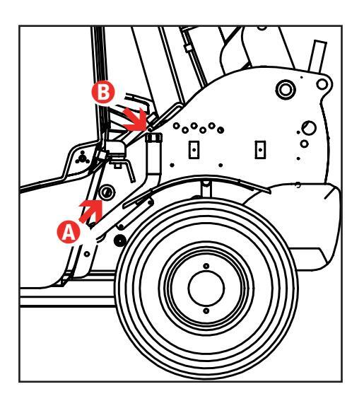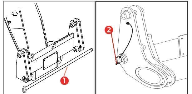 Číslo podvozku stroja je vyrazené na nosníku rámu, na pravej strane vpredu.