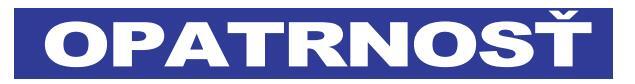 OPATRNOSŤ Modrej farby: označuje situáciu predstavujúcu možné riziko, ktorei ie treba zabrániť. Ak sa jej nezabráni, môže dôjsť k poškodeniu stroja alebo inětalácií