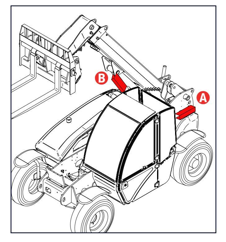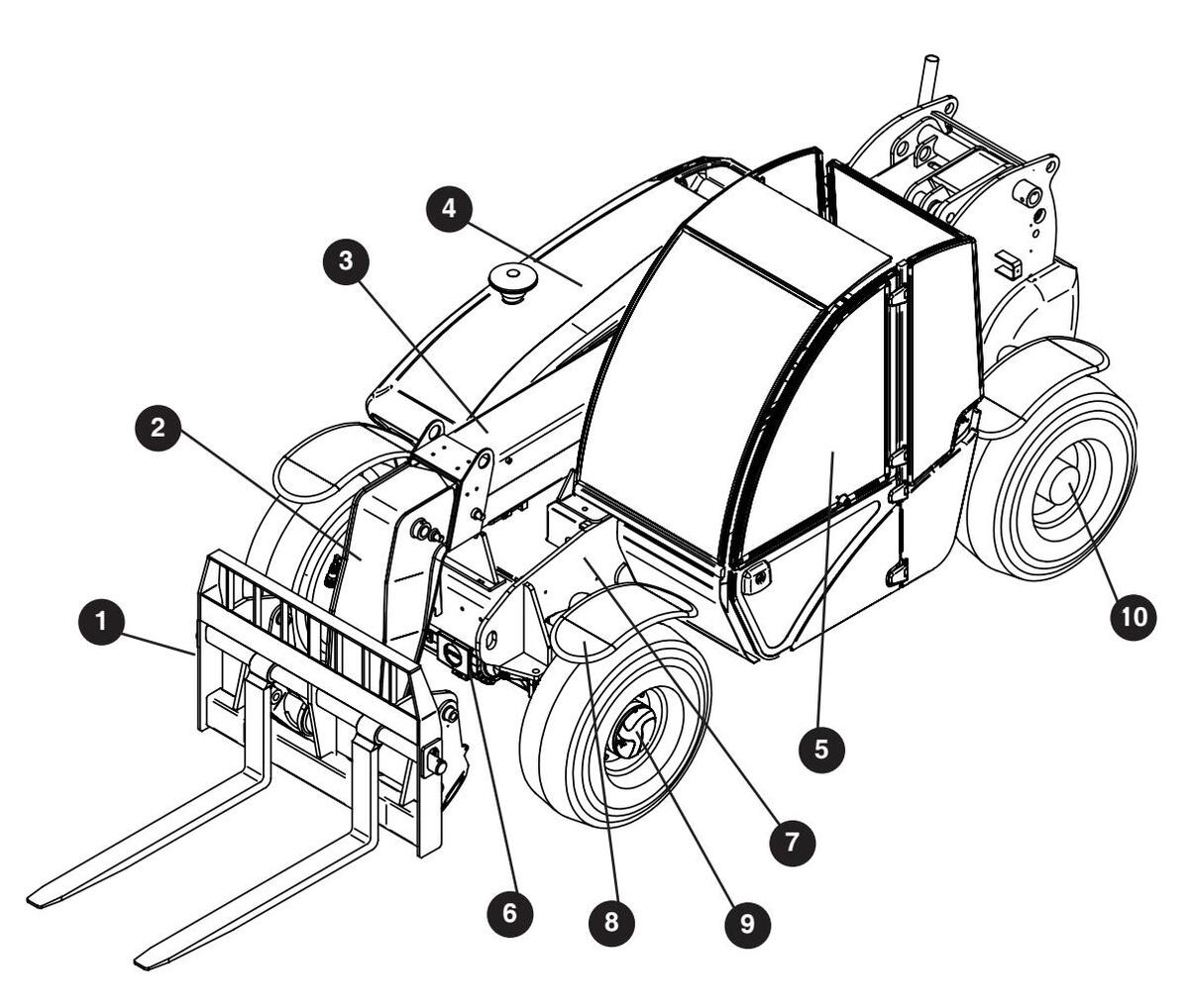 Gaflenes identifikasjonsskilt er plassert til venstre på gaffelrammen.