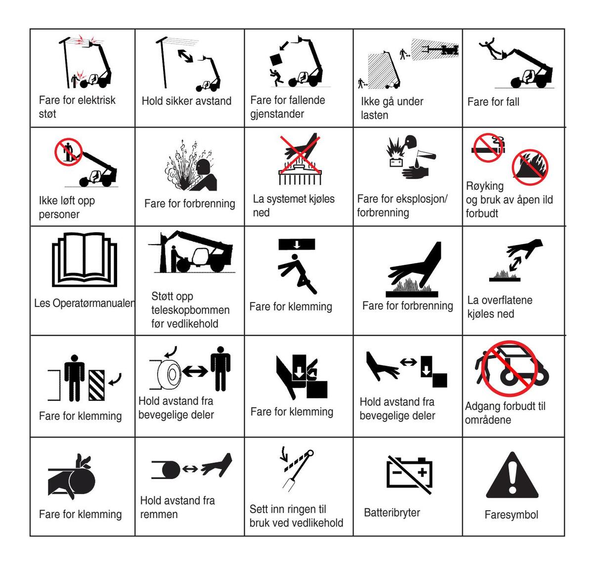 Les og forstå sikkerhetsbestemmelsene og bruksinstruksjonene før maskinen tas i bruk, og følg dem. Kun kvalifisert og godkjent personale må bruke maskinen. Manualen må alltid oppbevares i maskinen.