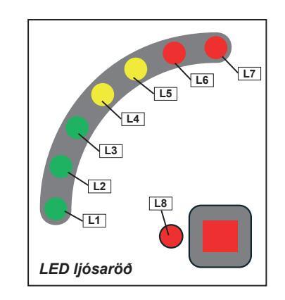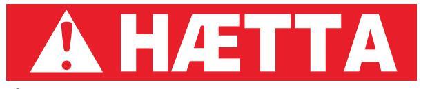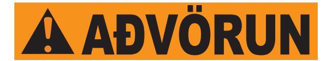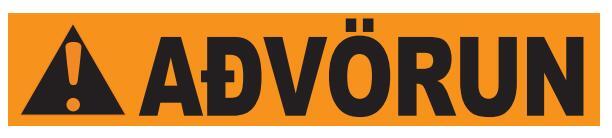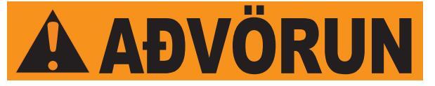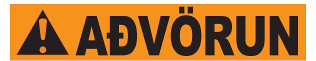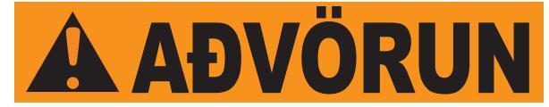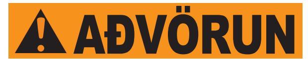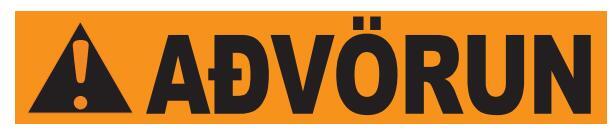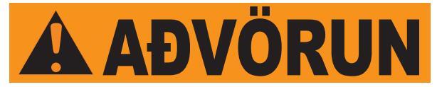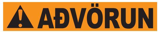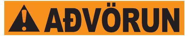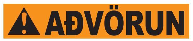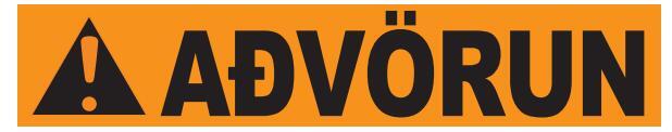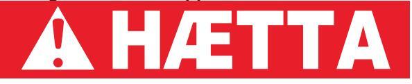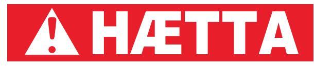 Rautt: gefur til kynna hættuástand sem leiðir til dauða eða alvarlegs líkamstjóns, séþví ekki sinnt.