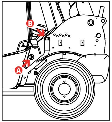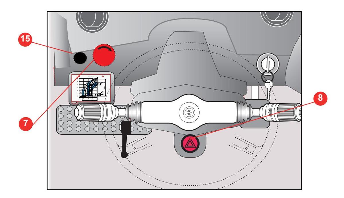 Staðsett vinstra megin á gálga lyftarans.