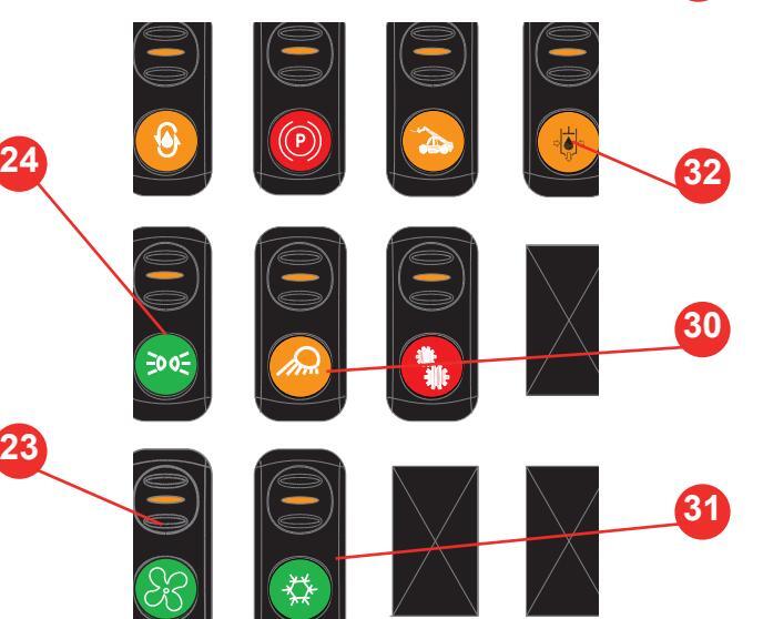 | Olíuþrýstingur | Glussavökvasía stífluð | Staða glussaolíu | Stefnuljós | Háljós |