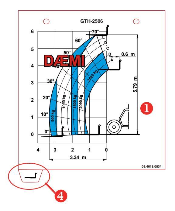 Umferðargagnaplatan er sett á grindina hægra megin að framan (aðeins á lyfturum fyrir Ítalíumarkað). Þessi plata sýnir gögn varðandi umferð og þyngdir viðkomandi tegundar af lyftara.