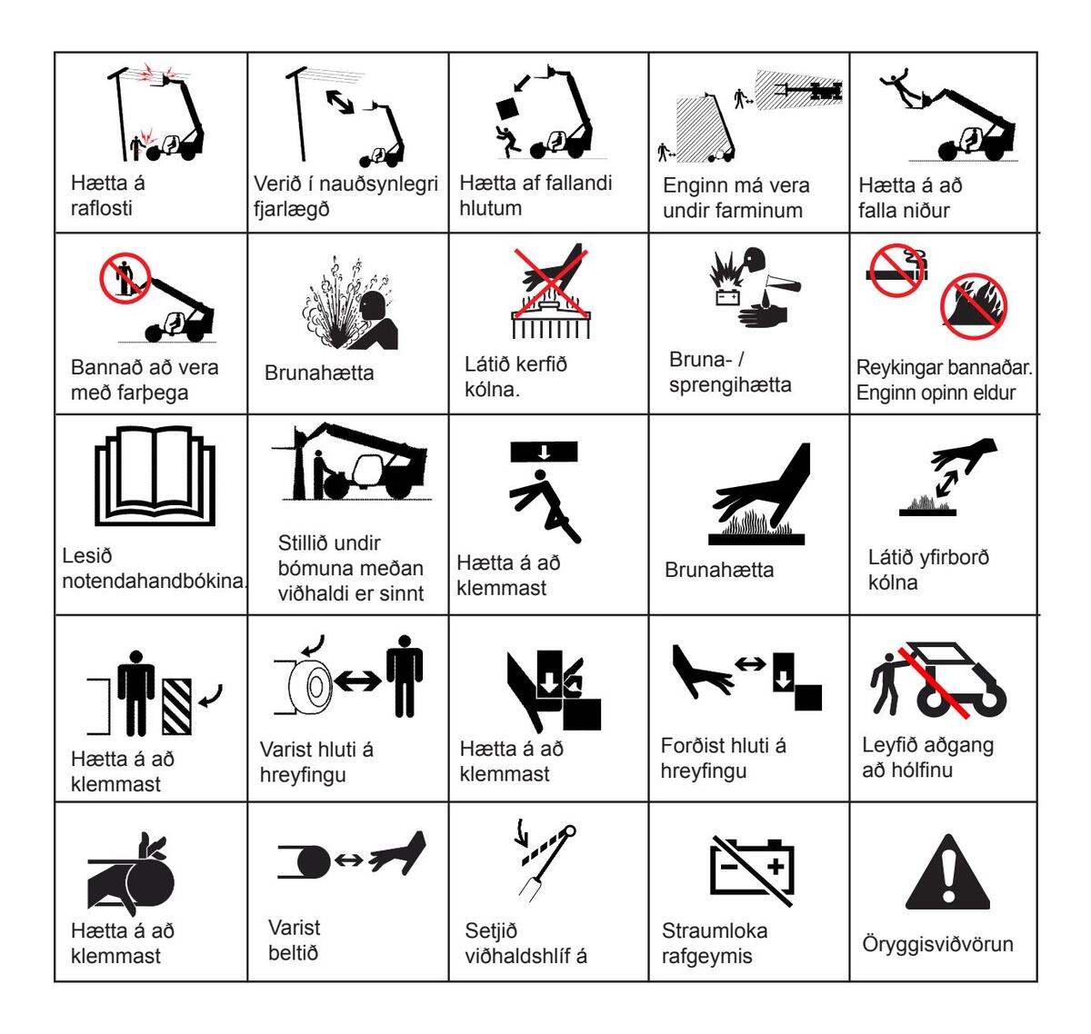 | Tákn sem notuð eru á lyftaranum síða | 7 |