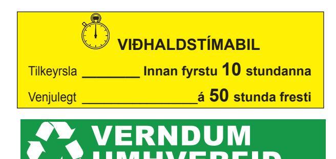 Grænt:notaðtilaðvekjaathygli á mikilvægum upplýsingum um umhverfisvernd.