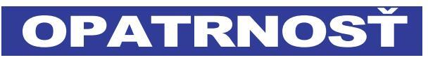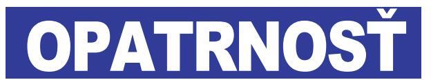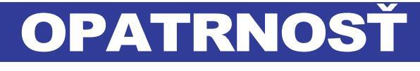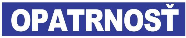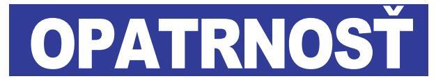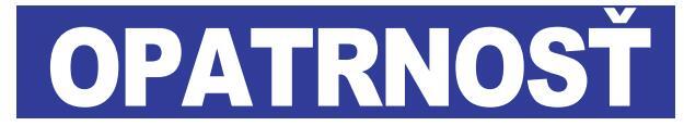 OPATRNOSŤ Modrej farby: označuje situáciu predstavujúcu možné riziko, ktorei ie treba zabrániť. Ak sa jej nezabráni, môže dôjsť k poškodeniu stroja alebo inětalácií