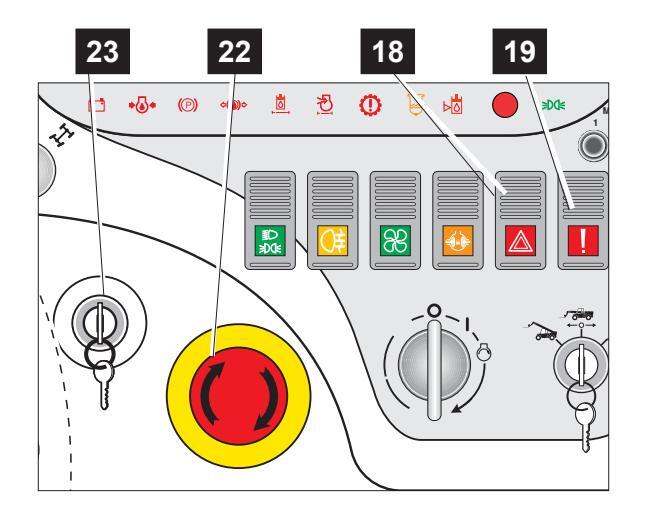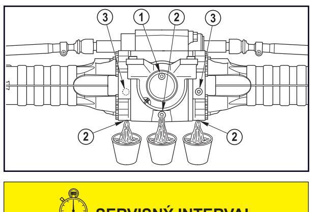 Filtračná vložka filtra hydraulického oleja sa musí vymeniť vždy, keď sa rozsvieti kontrolka 6.7 (pozri kap. Ovládanie a Prístroje).
