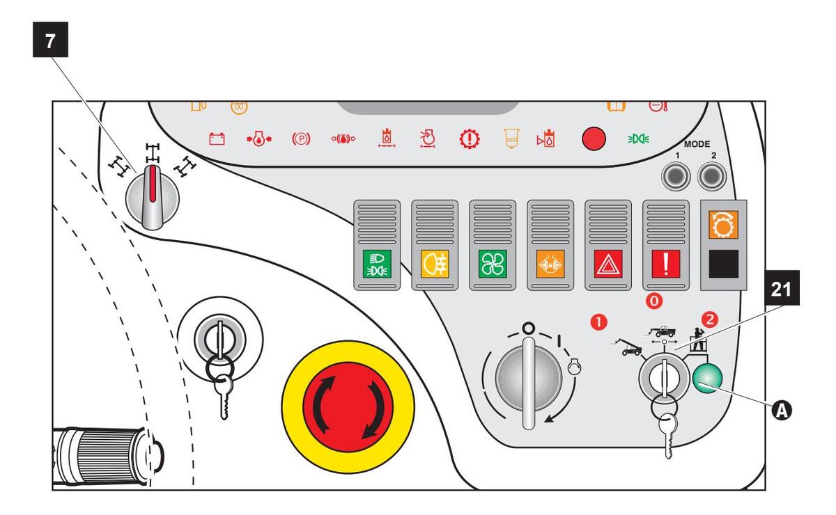 Skontrolujte hladinu hydraulického oleja (vizuálne) cez špeciálnu hladinu A ktorá je pripevnená do nádrže.
