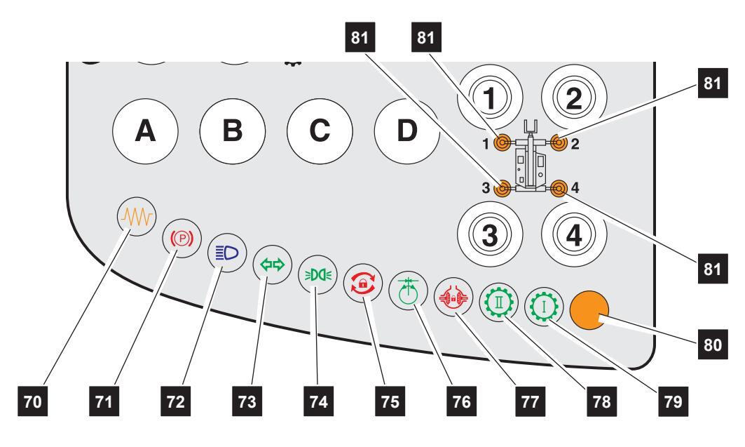 Štítok homologácie pre cestnú premávku je pripevnený na podvozku, na pravej strane vpredu (štítok sa nachádza iba na strojoch určených pre taliansky trh).
