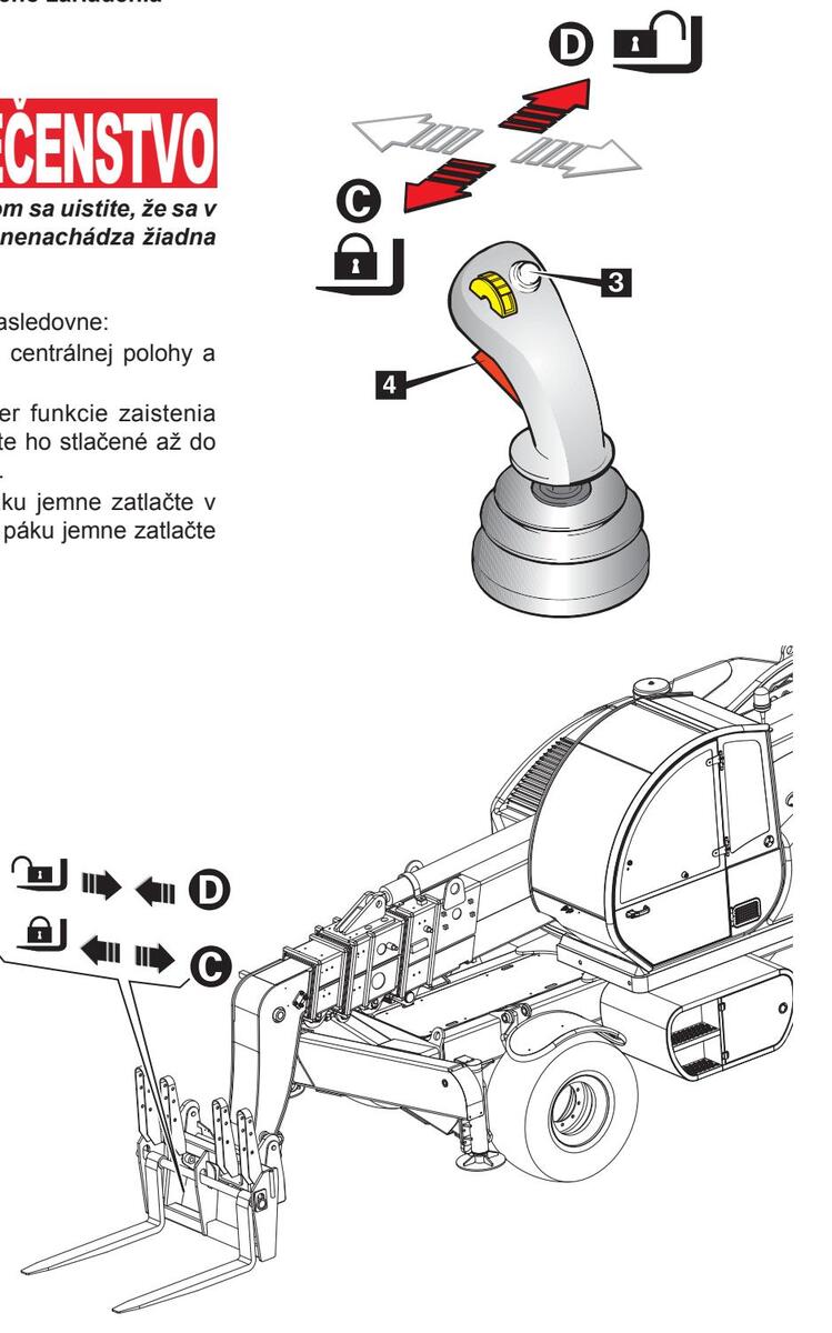 Toto dosiahnete vypnutím motora, aktivovaním parkovacej brzdy a manipuláciou ovládacích pák distribútorov v oboch pracovných smeroch (alternatívne) pre odvzdušnenie hydraulického obvodu.