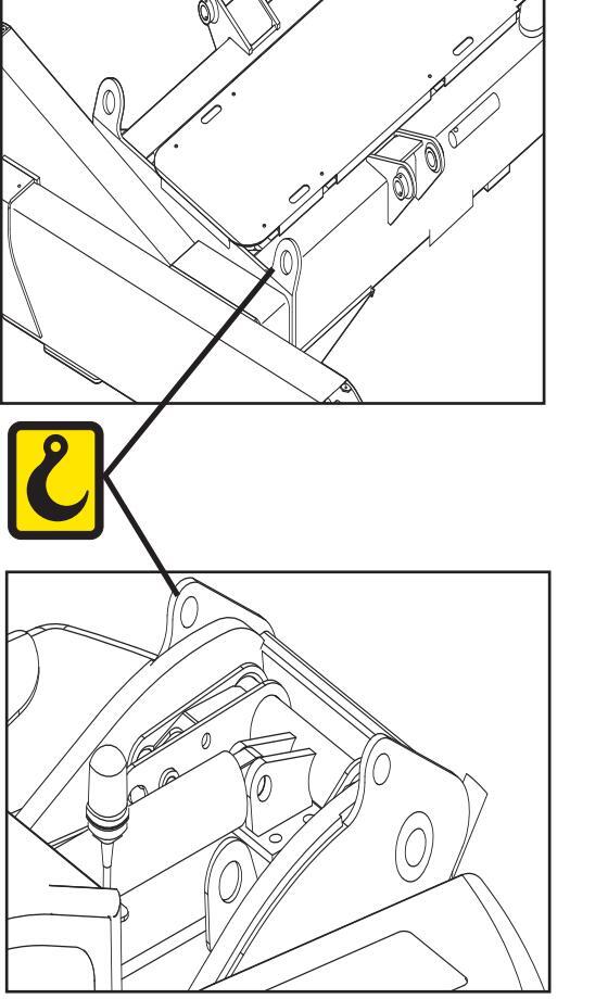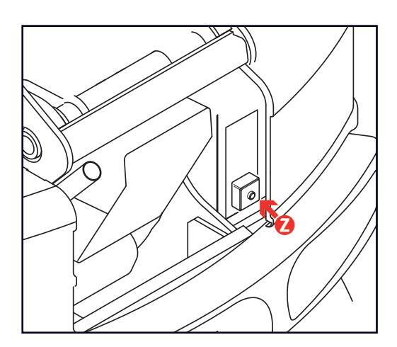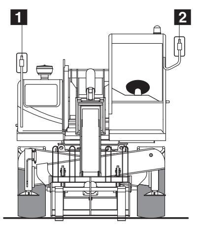 Na strojoch určených pre zahraničné trhy sa štítok nachádza na podvozku, vpredu napravo.