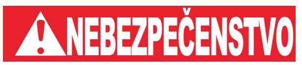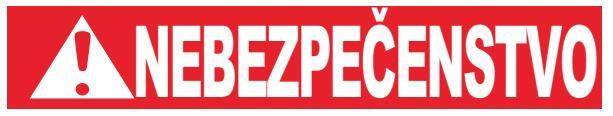 NEBEZPEČENSTVOČervenej farby: označuje situáciu predstavujúcu bezprostredné riziko. ktorej je treba zabrániť. Ak sa jej nezabráni, môže dôjsť k vážnym poraneniam alebo až k usmrteniu.