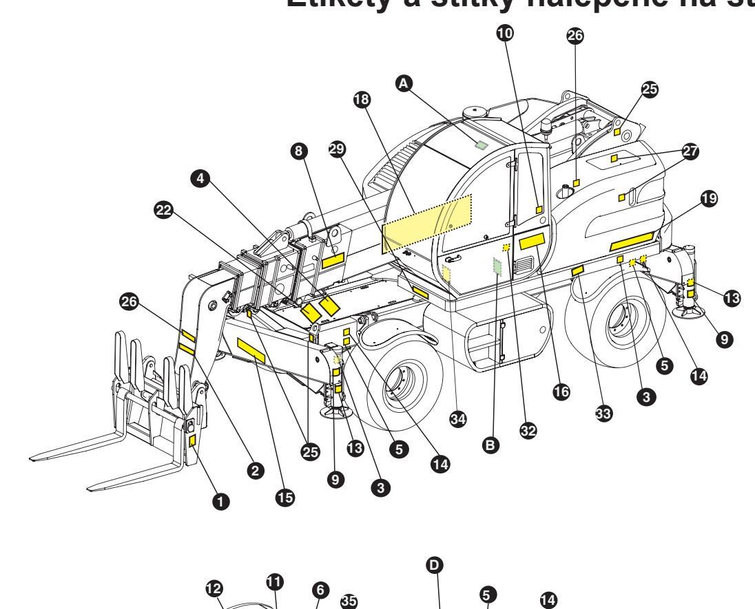 | Etikety a štítky nalepené na stroji | Str. | 15 |