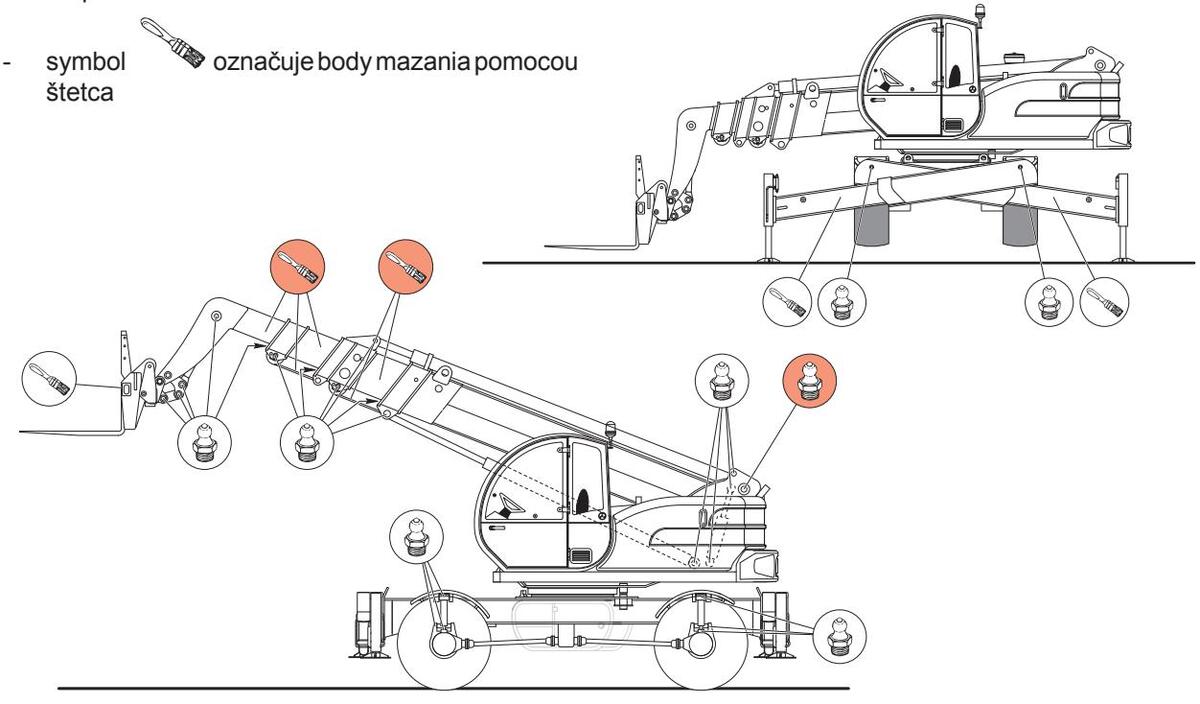 symbol 🗑 označuje body mazania pomocou čerpadla