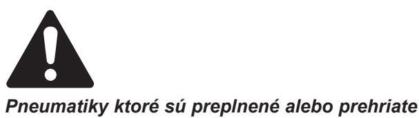 Pneumatiky ktoré sú preplnené alebo prehriate môžu prasknúť.