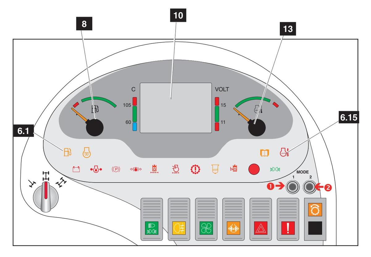 | Bromstryck | Hydrauloljefilter | Luftfilter | Ej aktiv | bränslet | Hydrauloljenivå |